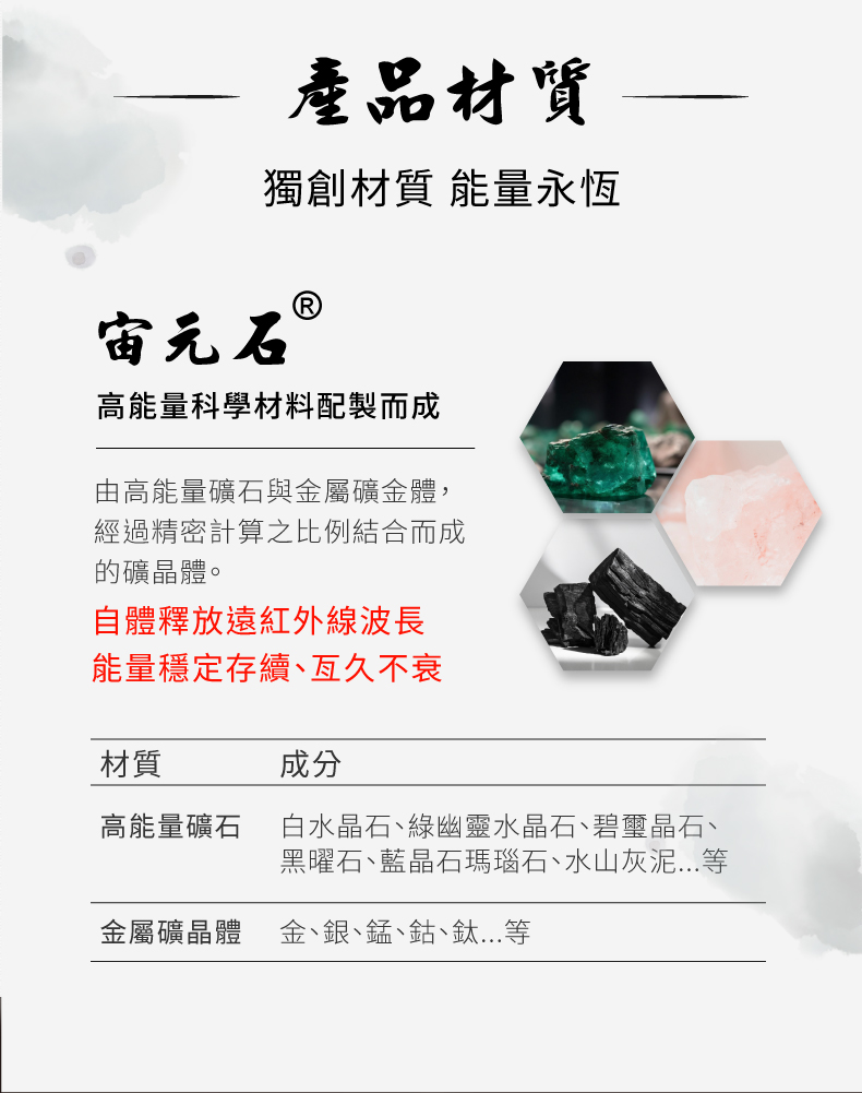 獨家宙元石具有遠紅外線 使肌膚產生熱能並淨化身體