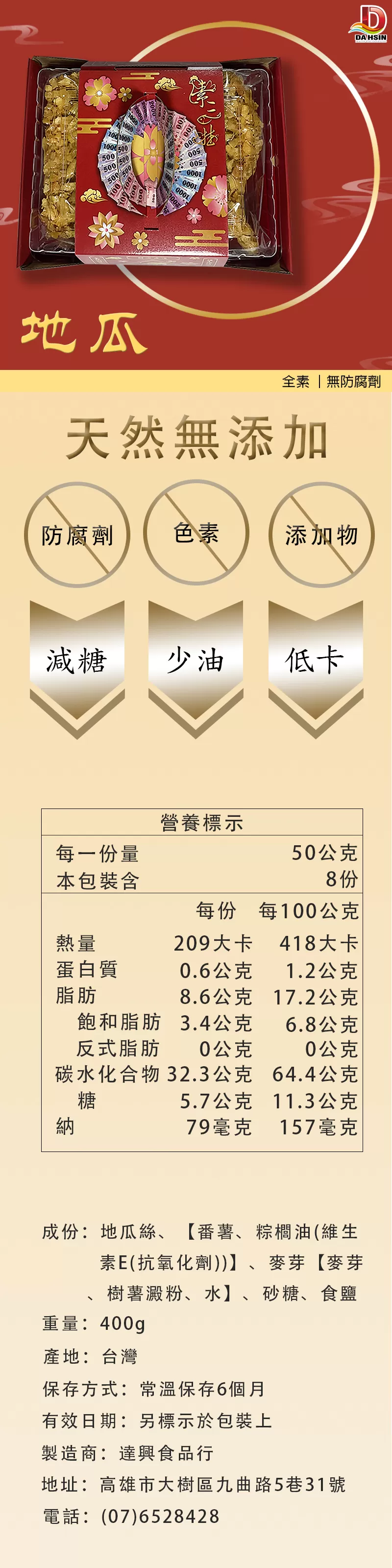 《達興食品》地瓜素三牲400g/盒