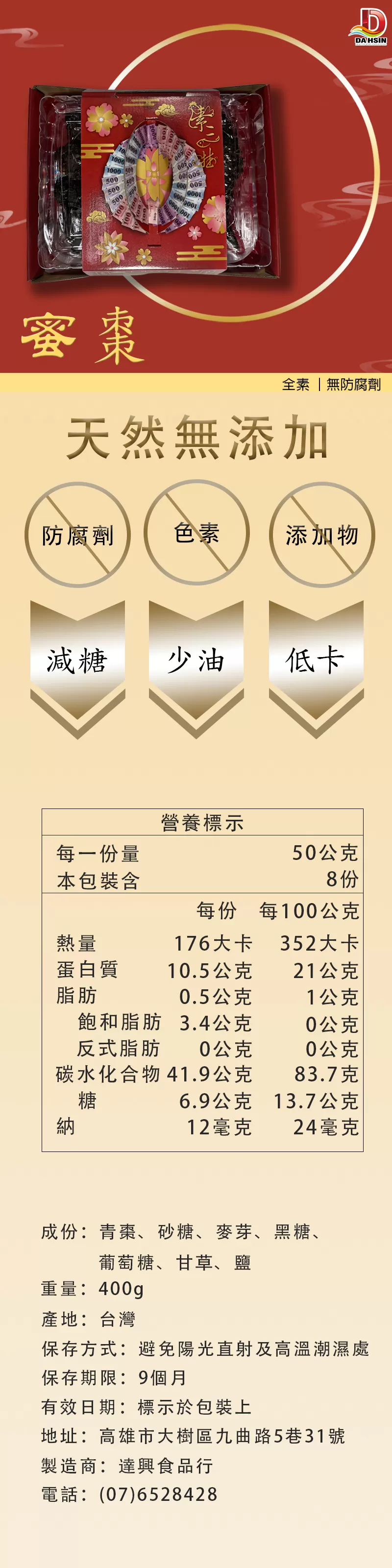 《達興食品》台灣蜜棗素三牲400g/盒