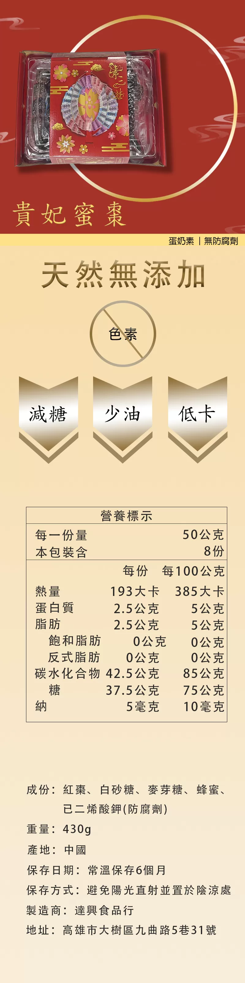 《達興食品》貴妃蜜棗素三牲430g/盒