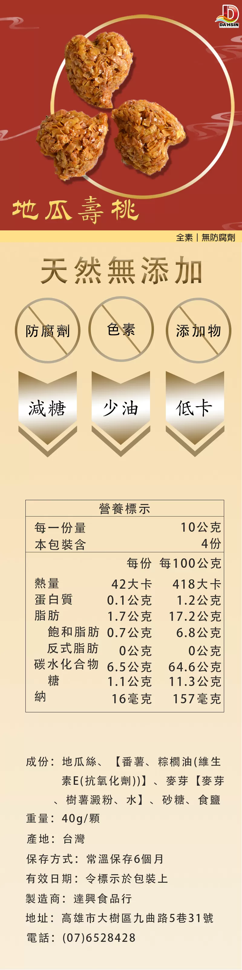 《達興食品》地瓜壽桃40g
