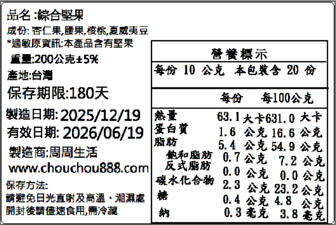 《周周生活》綜合堅果 200g/包 | 福報購蔬食購物商城