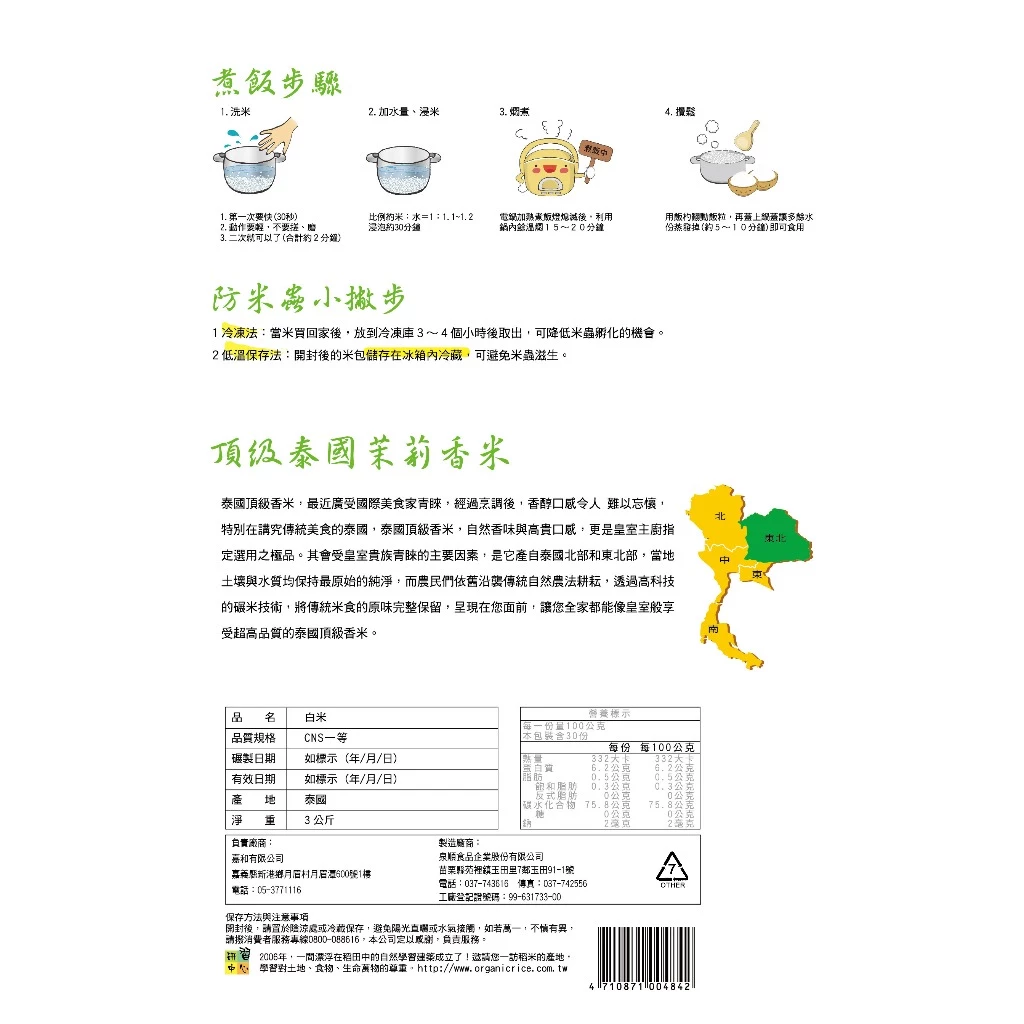 《禾掌屋》山水米 — 泰國茉莉香米 3kg/包