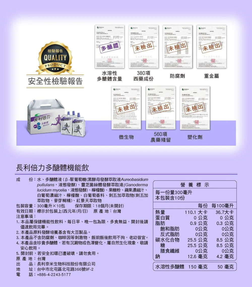 《長利奈米生技》長利倍力多醣體機能飲