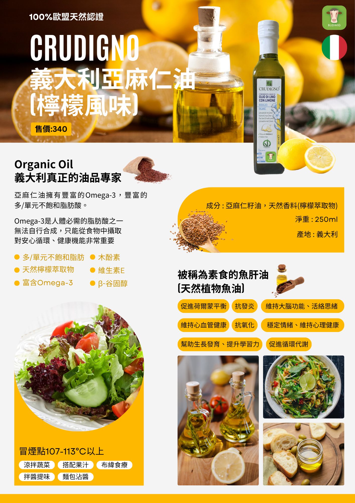 《布緯》CRUDIGNO 義大利亞麻仁油(檸檬風味) | 福報購蔬食購物商城
