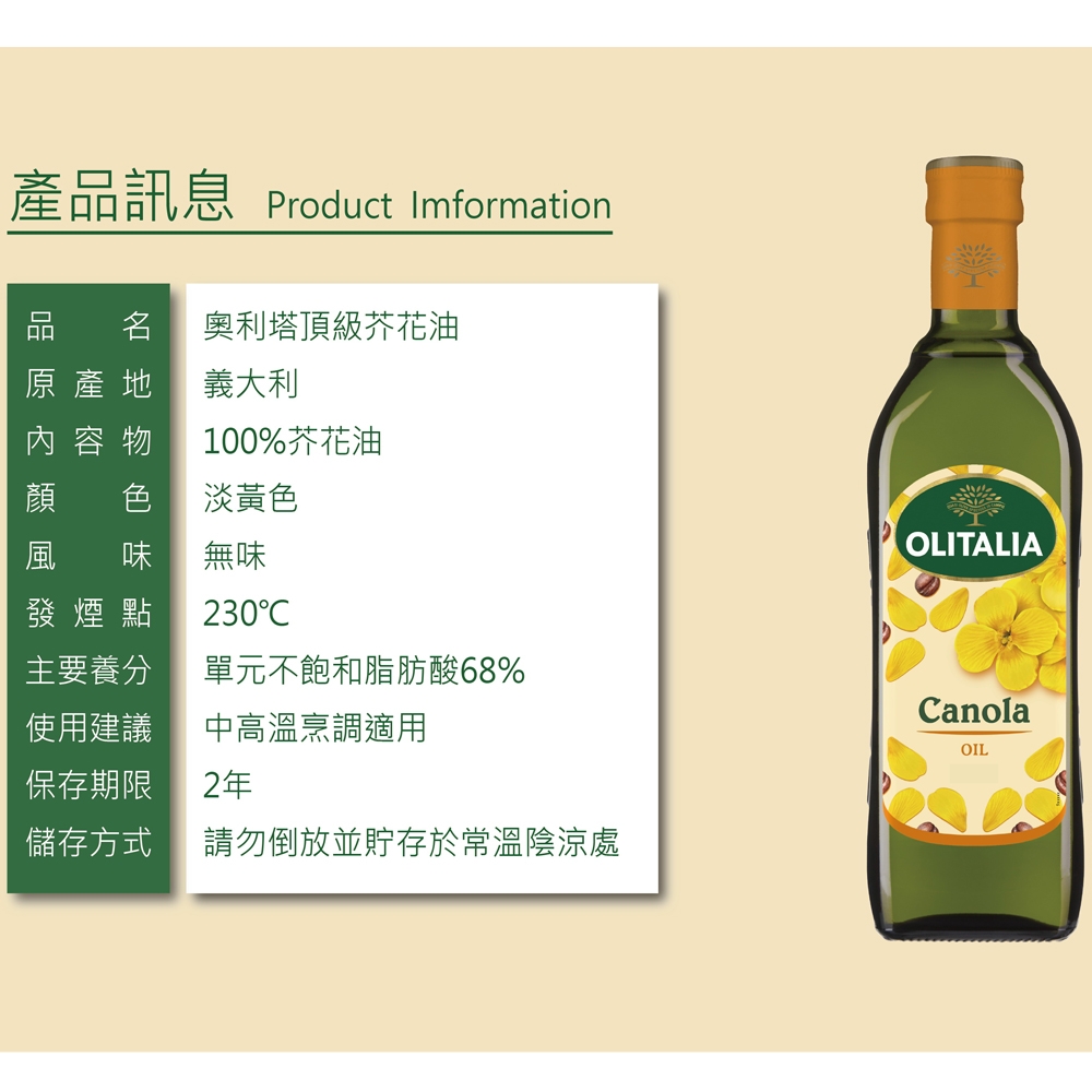 《Olitalia奧利塔》頂級芥花油禮盒組(750ml/瓶,共2瓶)