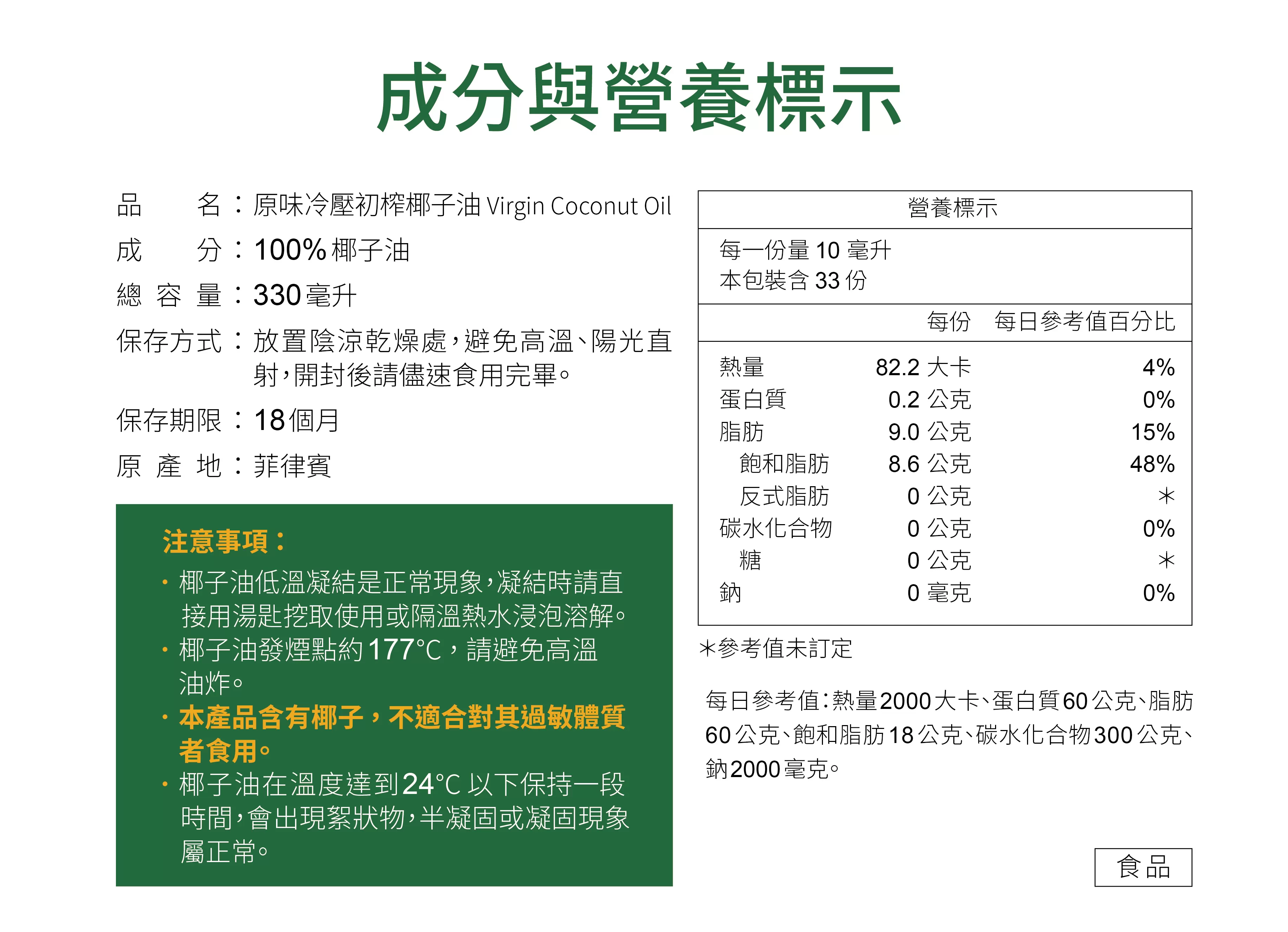 規格 苦行冷壓初榨椰子油+天然椰子油, 共2瓶