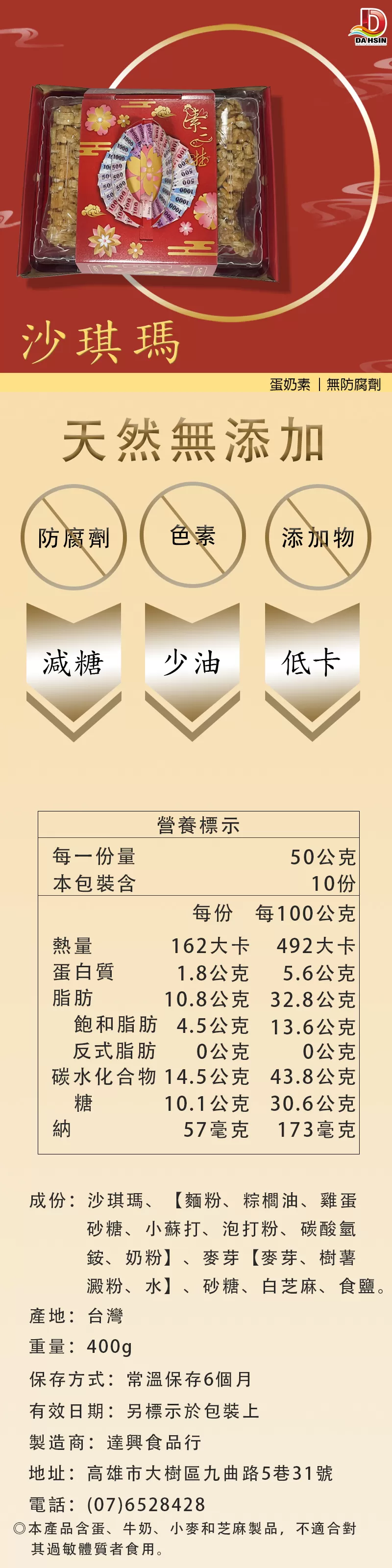 《達興食品》沙琪瑪素三牲 330g/盒