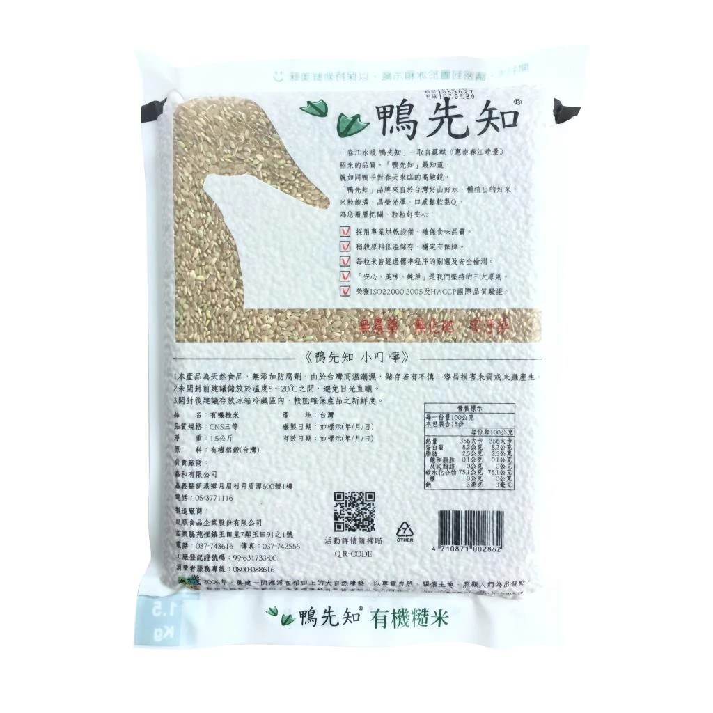《禾掌屋》鴨先知 — 有機糙米 1.5kg/包