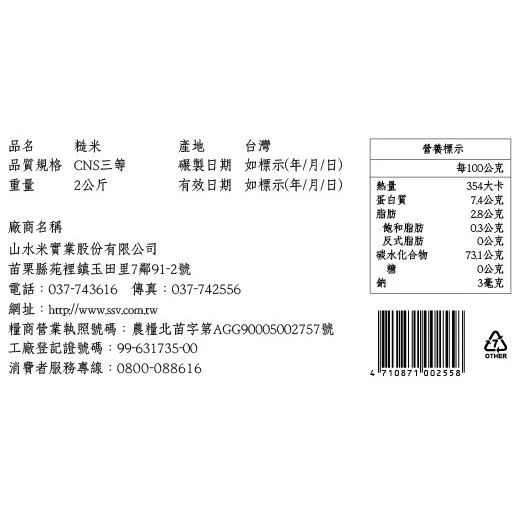 規格 2kg/包,共1包